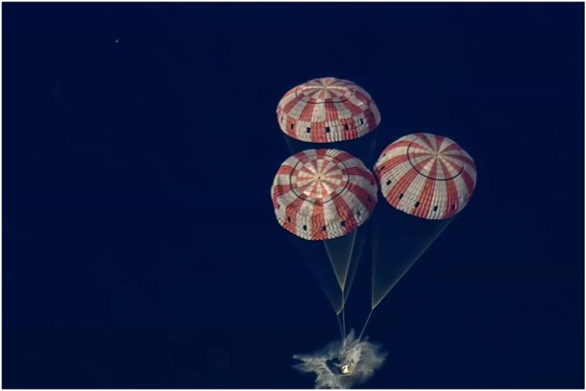 Astronotlar Reid Wiseman, Victor Glover, Christina Koch ve Jeremy Hansen’yi taşıyan Orion uzay aracı, yerel saatle 17.07’de ABD’nin San Diego açıklarına paraşütle iniş yaptı.