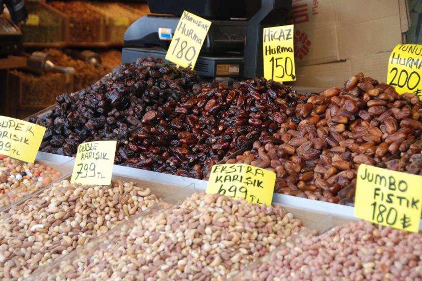 “Geçen senelere göre daha zayıf, daha az hareket var ama orta seviyede ilerliyor. Şeker çeşitlerimizi bu hafta dükkâna koyduk. Genel olarak orta kalitede şekerlerimiz satılıyor. Bazı iyi şekerler var, kilosu 1000 TL bandında; insanlar bunları alamıyor. Yani bu durum 3-5 sene öncesine kadar böyle değildi. Biz burada genelde kiloyla satış yapıyorduk; 1 kg olsun, yarım kilo olsun, 2 kg olsun insanlar evlerine rahatlıkla alabiliyordu. Ama ne yazık ki 1 kg iyi bir kuruyemiş bir insanın bir günlük maaşına tekabül ettiği için insanlar kiloyla alamıyor."