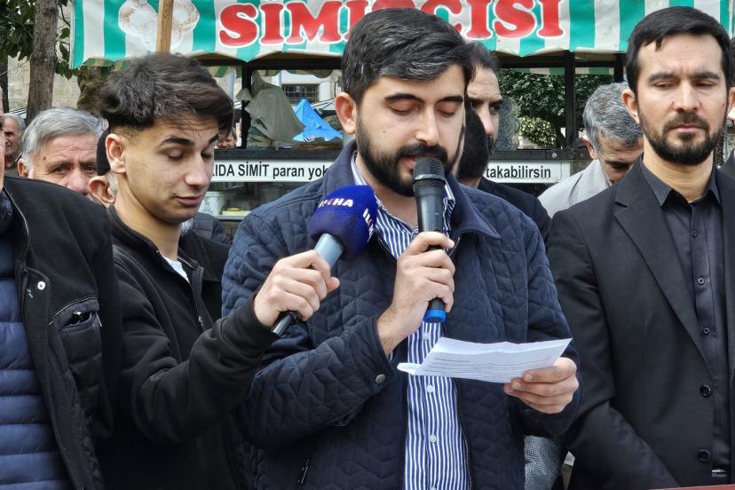 Basın açıklamasını Bursa Peygamber Sevdalıları Derneği Başkan Yardımcısı Umut Işık okudu. Programda ayrıca Bursa Umut Kervanı İsa Güvendik konuşmacı olarak yer aldı.