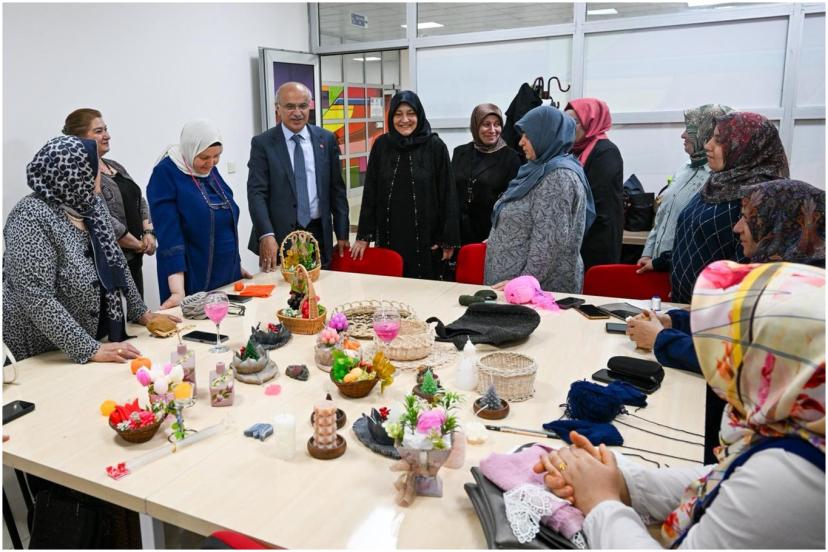 Kadınlara yönelik faaliyet gösteren giyim, mefruşat, el sanatları, saç bakım ve tasarım, biçki dikiş kurslarını ziyaret ederek, kursiyerlerle bir araya gelen Er, Büyükşehir Belediyesi olarak yaptıkları hizmetlerden insanların hoşlanmasının, fayda görmesinin kendilerini mutlu ettiğini belirtti.