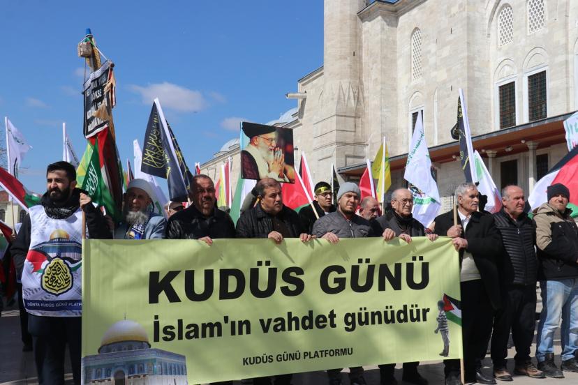 Dünya Kudüs Günü Platformu tarafından gerçekleştirilen program için cuma namazı sonrasında Fatih Camii'nde bir araya gelen yüzlerce kişi, ellerinde İran, Türkiye ve Filistin bayrakları, dillerinde ise işgal rejimi ve ABD aleyhine, direniş lehine sloganlar atarak Saraçhane Parkı'na kadar bir yürüyüş gerçekleştirdi.