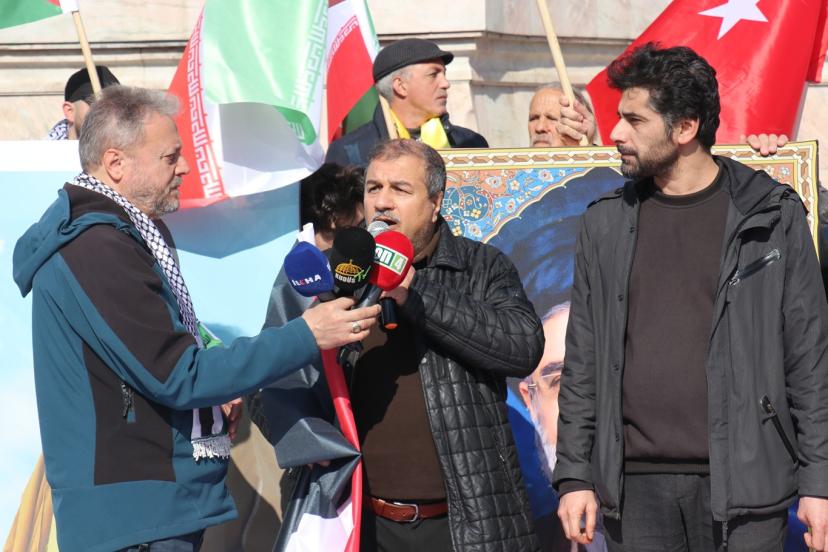 Direniş hattının bir ve bölünmez olduğunu belirterek Gazze, Lübnan, Yemen ve İran direnişine selam gönderen Ekşi, "Biz biliyoruz ki Beyrut'un acısı İstanbul'un acısı, Sana'nın direnişi Kudüs'ün zaferidir. Mezhepçilik ve milliyetçilik fitnelerini ayaklarımızın altına alıyor, tek bir yumruk gibi Siyonizm'in karşısına dikiliyoruz. Baş düşman ABD ve siyonist rejimdir. İsrail, bölgeye saplanmış bir hançer, ABD ise o hançeri tutan kirli eldir. Bu zulüm sadece Tel Aviv'de değil, Washington'un karanlık koridorlarında planlanmaktadır. İslam coğrafyasını parçalamak isteyen Büyük Ortadoğu Projelerine, normalleşme ihanetlerine ve emperyalist kuşatmalara geçit vermeyeceğiz. Bizim için büyük şeytan ABD ve onun karakolu olan siyonist rejim, insanlığın ortak düşmanıdır." diye konuştu.