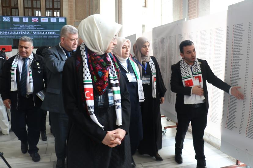 Panelin ardından Edebiyat Fakültesi Şeref Salonu'nda "Adalet Filistinli Kadınlar için" başlıklı serginin açılışı yapıldı. Sergide, Gazze'de hayatını kaybeden 22 bin kadın ve çocuğun isimlerinin yazılı olduğu 70 metrelik pankart açıldı. (İLKHA)