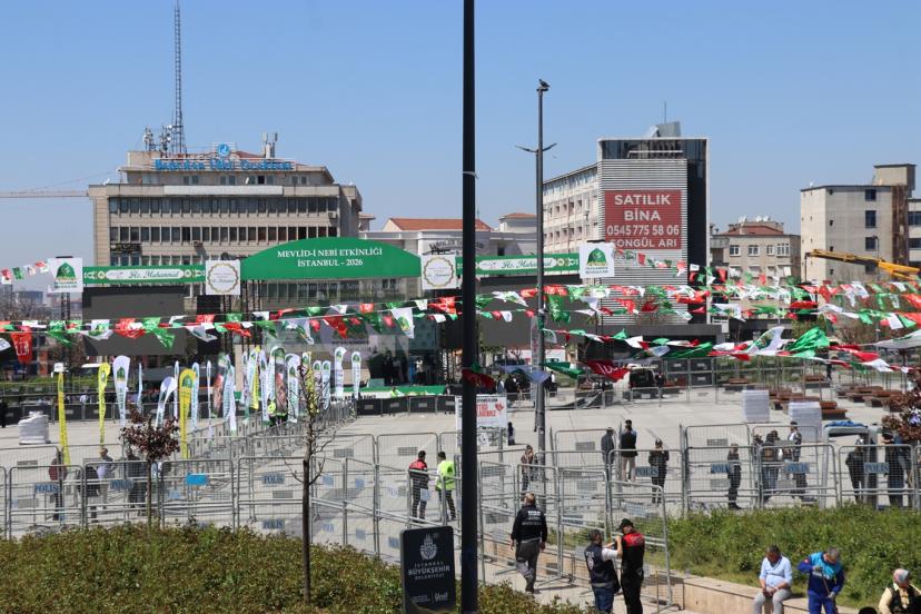 Saat 14.00'te gerçekleştirilecek olan "Mevlid-i Nebi" programı için hazırlanan Bağcılar Meydanı, Peygamber sevdasını haykırmak için tüm İstanbul halkını bekliyor.