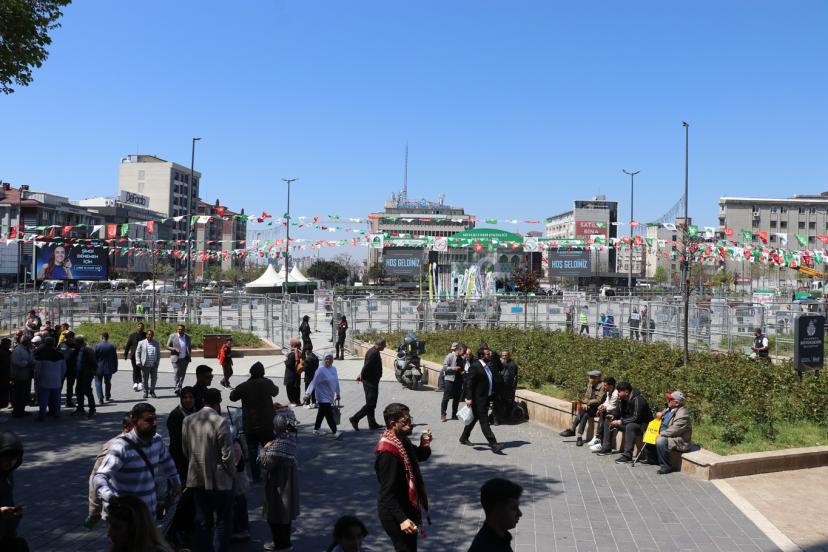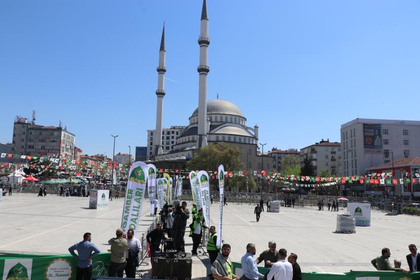 Dünden bu yana hazırlıkların devam ettiği Bağcılar Meydanı'nda sahne kurulup süslendi. Kutlu sevda için halkın misafir edileceği meydan ise "ABD ve siyonistlerin Gazze'de katlettiği evlatlarımız" yazısıyla minik şehitlerin fotoğrafları ile "ABD ve siyonistlerin İran'da katlettiği evlatlarımız" yazısıyla da İran okul saldırısında şehit edilen çocukların fotoğrafları ile süslendi
