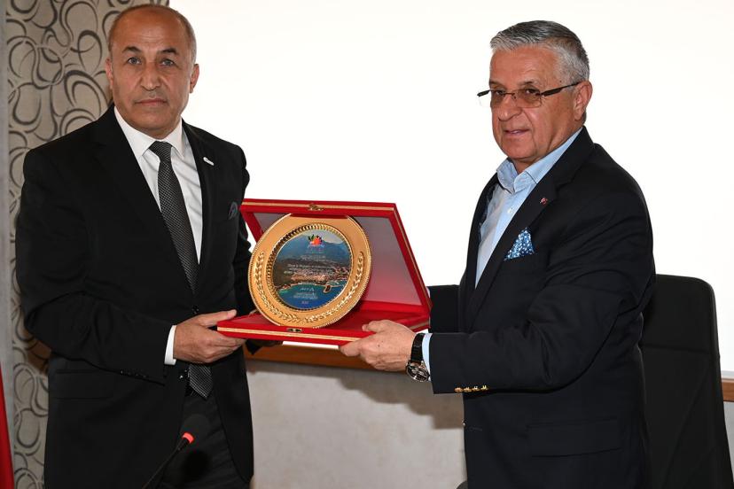Başkan Topaloğlu, meclis toplantısında Kemer Turizmci ve İş İnsanları Derneği'nin (KEMİAD) eski başkanı Rıza Sönmez'e ilçeye yaptıkları başarılı projelerden dolayı teşekkür ederek plaket verdi.