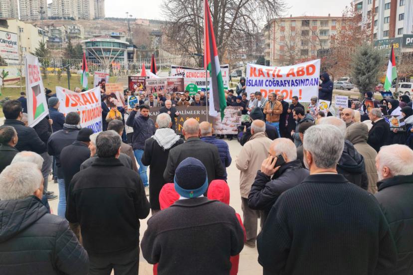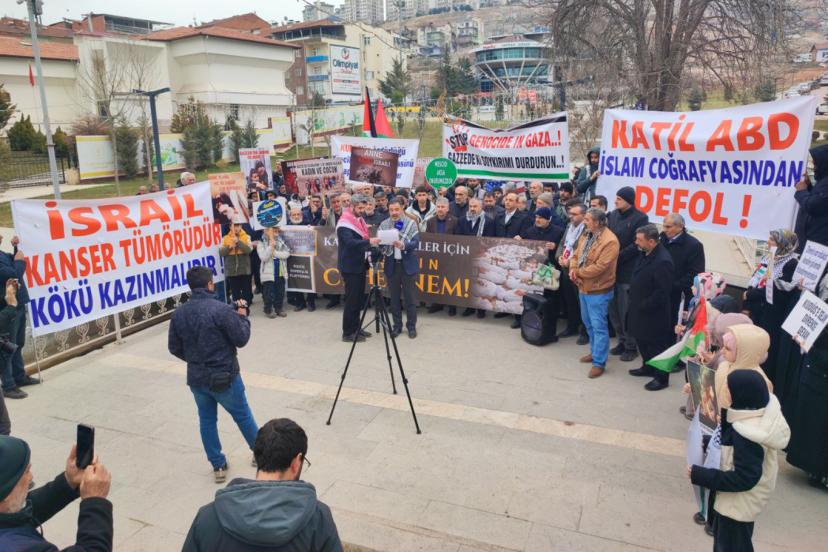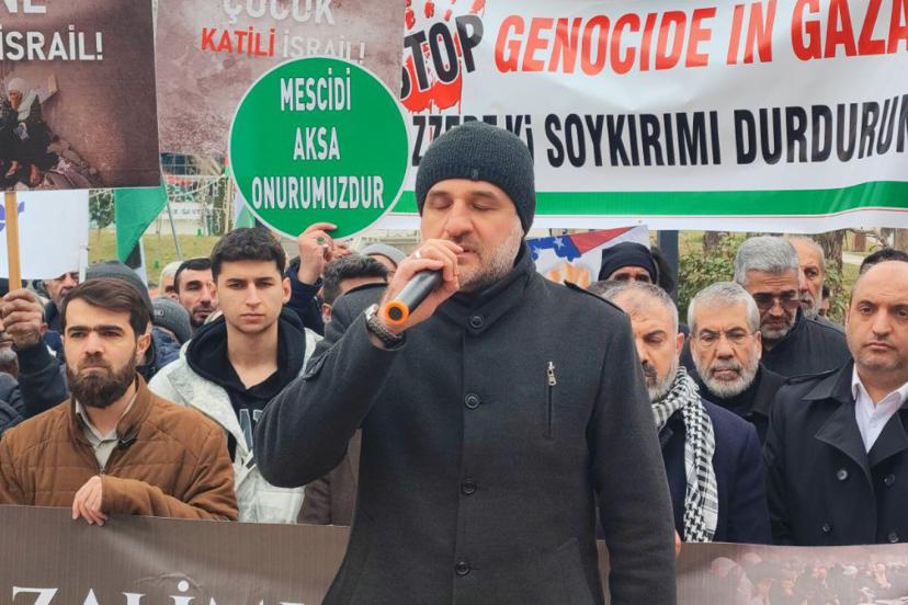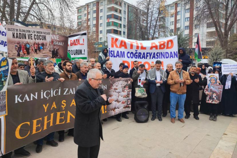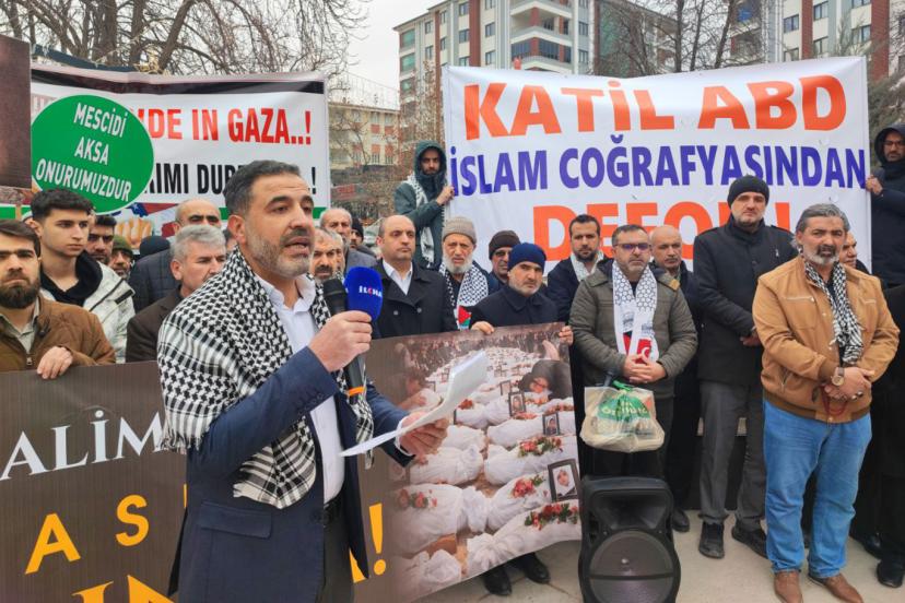 Kudüs Kardeşlik Platformu adına konuşan Bilal Karaduman, Kudüs, Mescid-i Aksa ve Gazze'de yaşananlara dikkat çekmek için bir araya geldiklerini belirterek, "Bugün burada, sadece bir bölgenin değil, tüm insanlığın vicdan durağı olan Kudüs, Mescid-i Aksa ve Gazze'de yaşanan soykırıma dur demek; bu beldeleri elde etme adına siyonist yayılmacılığın küresel barışı nasıl bir uçuruma sürüklediğine dikkat çekmek ve İslam coğrafyasının dört bir yanında yakılan fitne ateşine karşı vahdeti haykırmak için toplanmış bulunmaktayız." dedi.