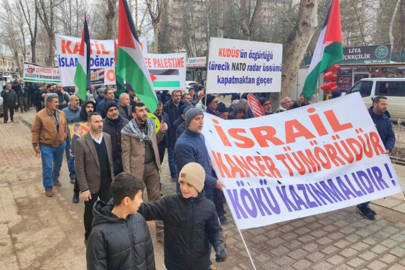 Malatya'da Kudüs Kardeşlik Platformu tarafından Dünya Kudüs Günü dolayısıyla düzenlenen yürüyüş ve basın açıklamasında Gazze, Kudüs ve İslam coğrafyasında yaşanan gelişmelere dikkat çekildi.