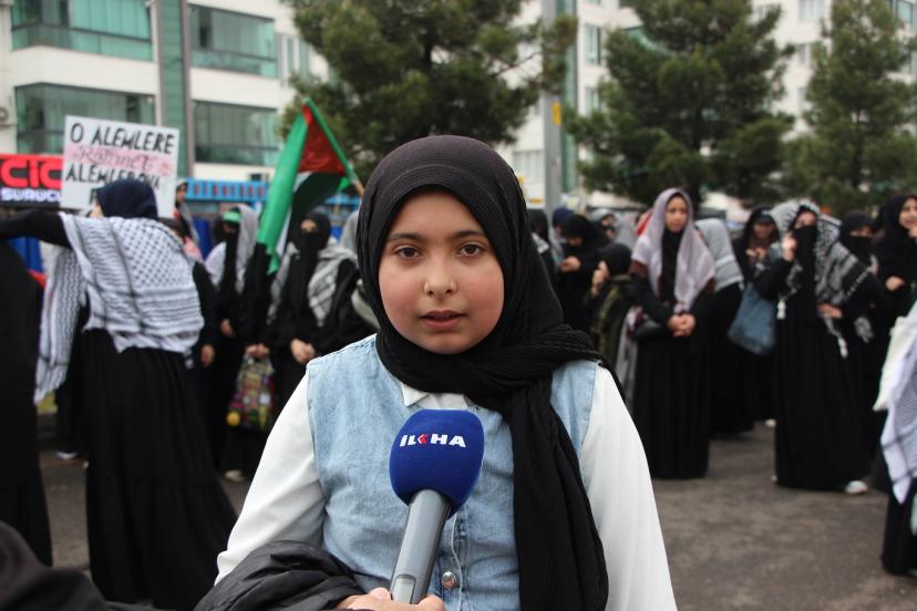 Tekbir ve salavat getirdiklerini söyleyen Feyzanur Demir, "Peygamber Efendimiz Aleyhisselamı çok seviyoruz, O'nun için geldik. Bugün buraya tekbir ve salavatlar getirdik. Efendimiz Aleyhisselam, çocukları çok seviyordu, bizler de O'nu çok seviyoruz." şeklinde ifade etti.
