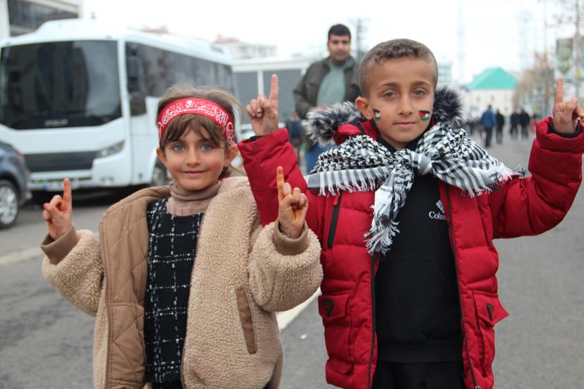 Fatma Betül çelik ise "Çok iyi yaptık buraya gelmeye. Gerçekten çok memnunum. İnşallah daha çok memnun olurum. Yani Peygamber Efendimizi de çok seviyoruz. Peygamberimiz olduğu için çok mutluyuz. Bayrak sallayacağız." şeklinde konuştu.