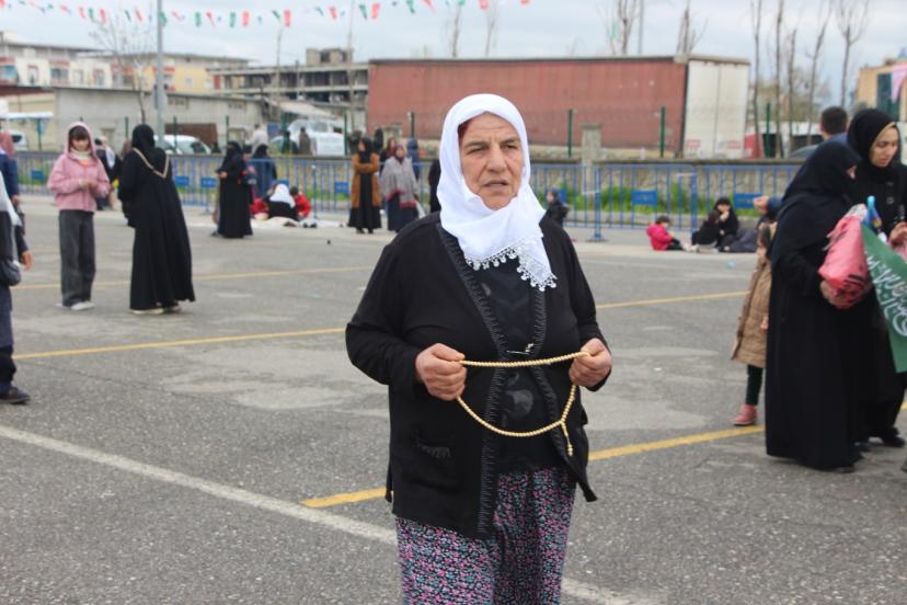 Tekerlekli sanadalye ile meydanda yerini alan 75 yaşındaki Huri Güneş, "Resulullah'ın mevlidi için gelinim ve eşimle birlikte geldik. Resulullah aşkı için alandayız. Yoğun bir kalabalık var. Peygamber Efendimiz'e olan aşkımız büyüktür. İnsanlar bu tür alanlara ne kadar rağbet ederse o kadar güzel olur." şeklinde konuştu.