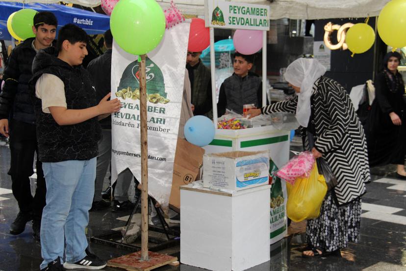 Bağlar ilçesinin güzide alışveriş adreslerinden biri olan Sakarya Caddesinde halkla bir araya gelen Peygamber Sevdalıları, kurdukları stantta çocuklara pamuk şekeri ile balon, anne-babalara lokum ve şeker ikramında bulunarak Diyarbakırlıları yarın düzenlenecek büyük buluşmaya çağırdı.