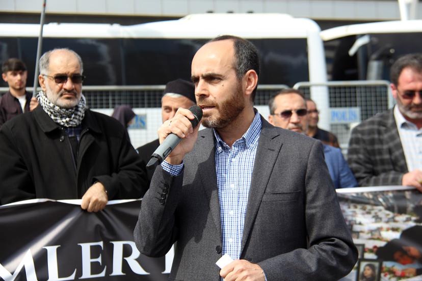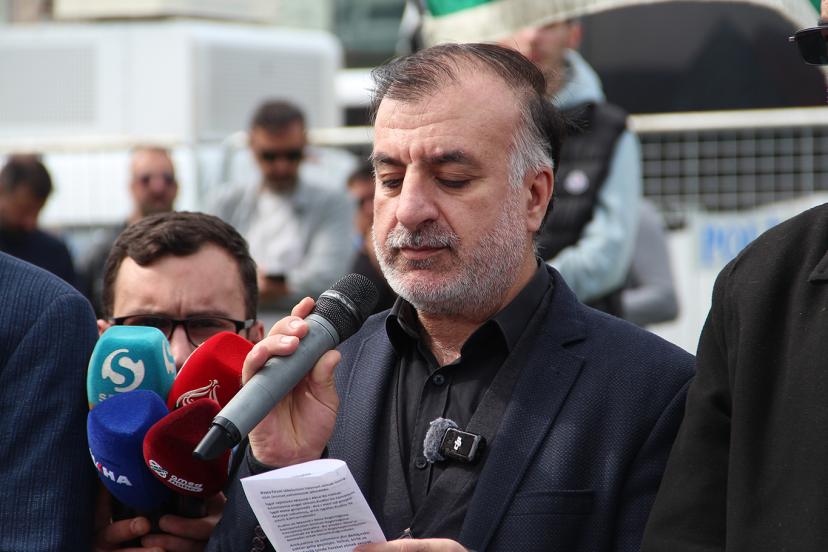 Basın açıklaması öncesi bir konuşma yapan İdeal Eğitim Vakfı Başkan Yardımcısı Fatih Taş, ümmetin Mescid-i Aksa'ya sahip çıkması gerektiğini belirterek yapılan zulüm ve soykırımlar karşısında mevcuttaki sessizliğin devam etmesi durumunda siyonistlerin daha büyük katliamlara hazırlanacağını söyledi.