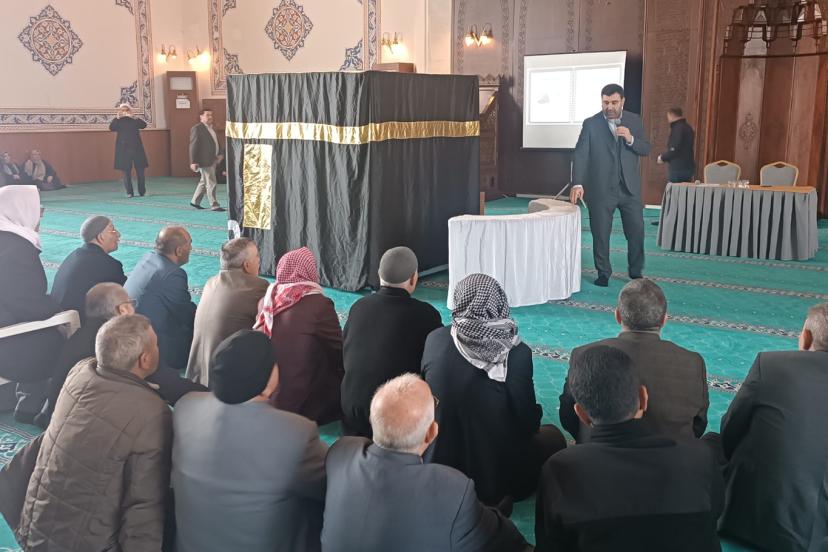 İl Müftü Yardımcısı Abdulhamit Turgut’un sunumlarıyla gerçekleştirilen eğitimde hac ibadetinin anlamı, önemi ve uygulama aşamaları detaylı şekilde ele alındı.