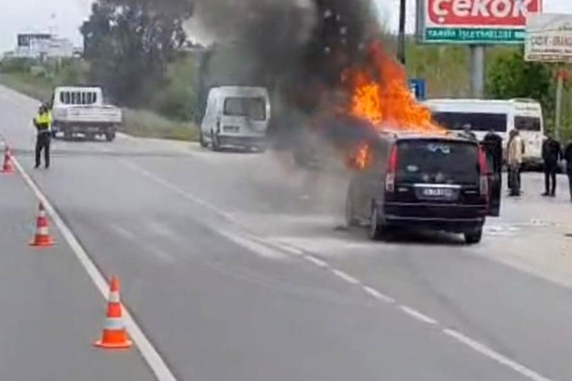 Antalya- Serik D400 Karayolu Kozağacı mevkisinde seyir halindeki hafif ticari aracın ön kısmında henüz bilinmeyen nedenle yangın çıktı. Alevleri fark eden sürücü, aracı yol kenarına çekerek indi. Trafiğin yoğun olduğu bir anda çıkan yangında trafik polisleri, yola duba yerleştirerek önlem aldı. Çevredekilerin ihbarı üzerine olay yerine gelen itfaiye ekiplerinin müdahalesiyle yangın söndürüldü. Araçta maddi hasar meydana geldi.