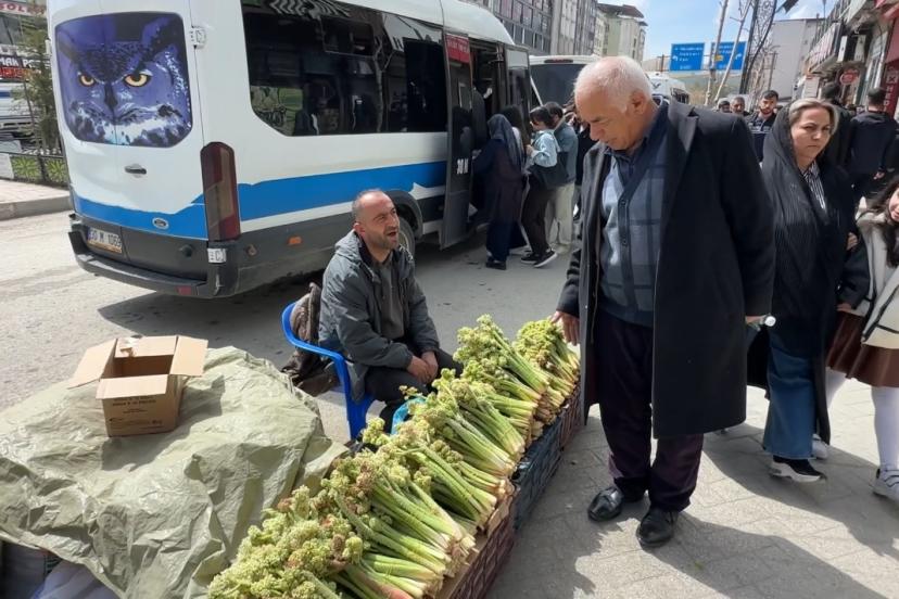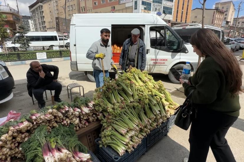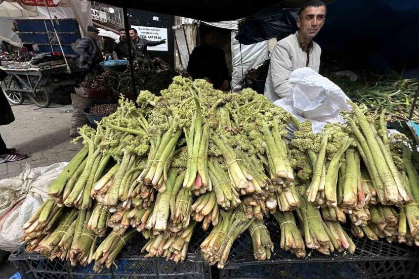 Hakkari ve ilçelerinde baharın müjdeleyicisi olarak bilinen, yüksek rakımlı dağlarda doğal olarak yetişen ve halk arasında "yayla muzu" olarak adlandırılan uçkun (revas), pazar tezgahlarındaki yerini alırken, sezonun ilk ürünleri ise destesi 150 liradan satılıyor.